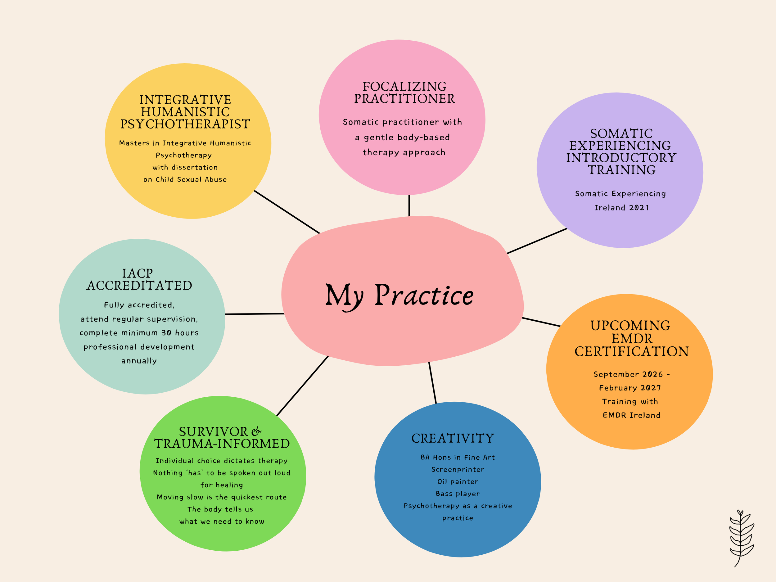 I recently certified as a Focalizing Practitioner, which is a gentle somatic (body-based) therapy to help you get to know yourself on a deeper level, to process events from your past, to listen to your body, & to communicate your needs & wants.